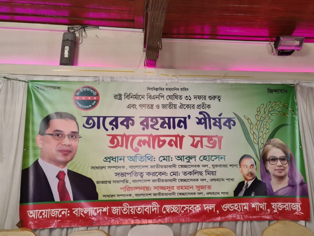 রাষ্ট্র বিনির্মাণে বিএনপি ঘোষিত ৩১ দফা কর্মসূচির গুরুত্ব এবং গণতন্ত্র ও জাতীয় ঐক্যের প্রতীক তারেক রহমানের নেতৃত্বের ওপর গুরুত্বারোপ করে এক আলোচনা সভা অনুষ্ঠিত হয়েছে যুক্তরাজ্যের ওল্ডহ্যামে।